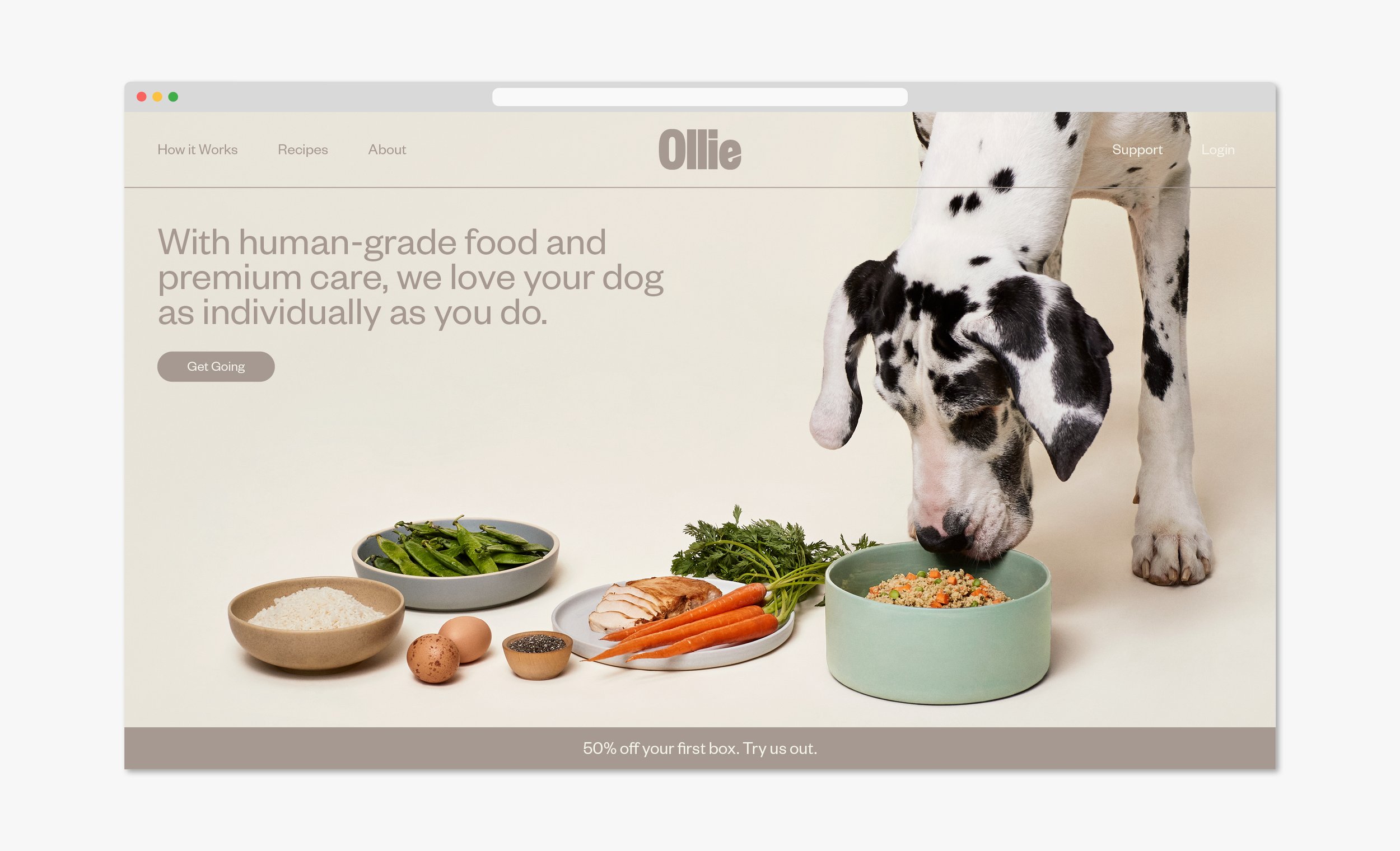 Ollie is a premium dog food brand built around one simple truth dogs deserve real food, made with real care. TCA partnered with Ollie to craft a brand that feels wholesome, trustworthy, and modern while standing out in a crowded pet care market.